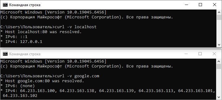 Вот как это выглядит у меня на компьютере, примеры для localhost и для google.com: